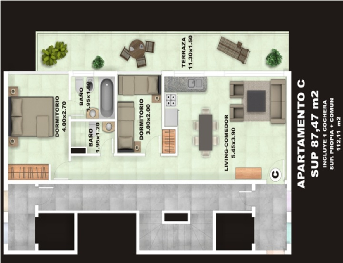 Cómodo apartamento de 3 dormitorios, 2 baños (uno en suite) y baño social. Dispone de una amplia ...